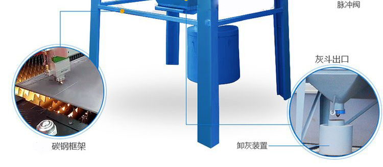 (3)塵氣入口設(shè)置擋塵板,有緩沖及耐磨作用,不使粉塵直接高速沖擊濾筒,因而能延長濾筒的使用壽命;